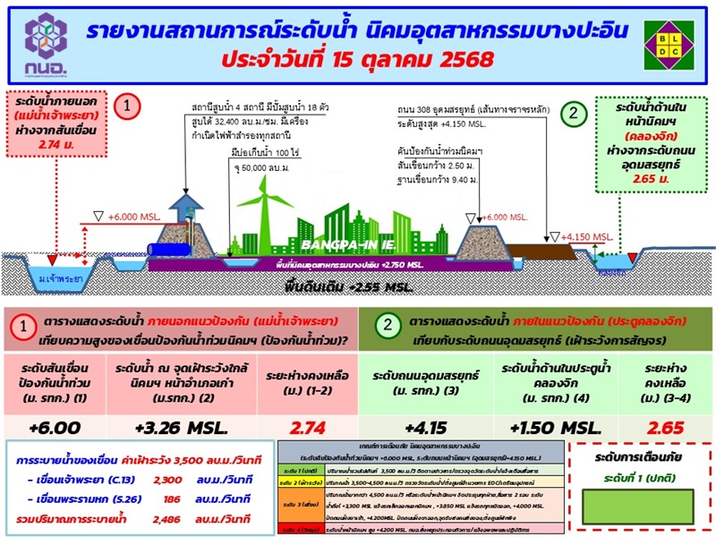 Chao Phraya water level at Bangpain Industrial Estate as at 15 October 2025