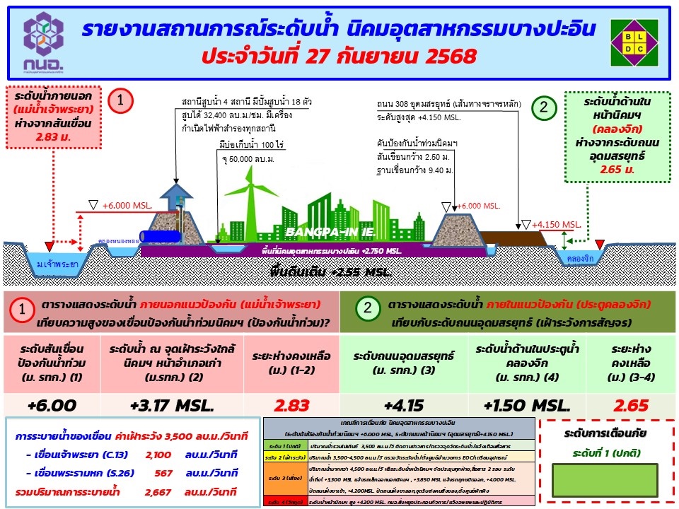 Chao Phraya water level at Bangpain Industrial Estate as at 27 September 2025