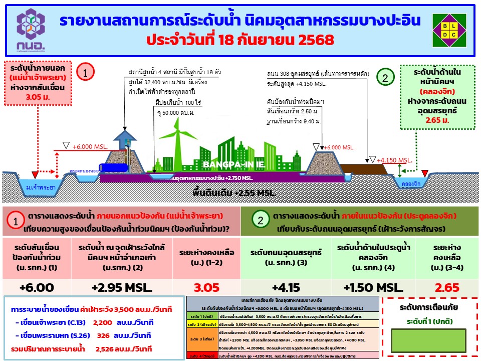 Chao Phraya water level at Bangpain Industrial Estate as at 18 September 2025