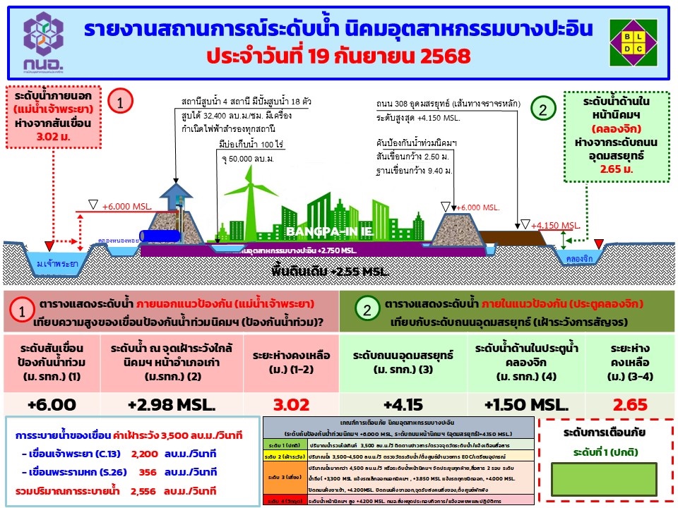 Chao Phraya water level at Bangpain Industrial Estate as at 19 September 2025