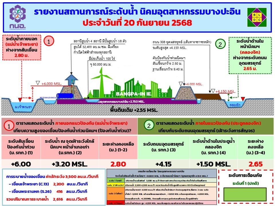 Chao Phraya water level at Bangpain Industrial Estate as at 20 September 2025