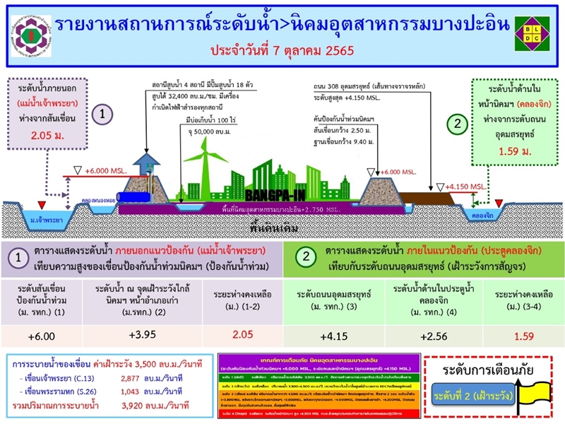 รายงานสถานการณ์น้ำ นิคมอุตสาหกรรมนิคมบางปะอิน ประจำวันที่ 7 ตุลาคม 2565 (เช้า)