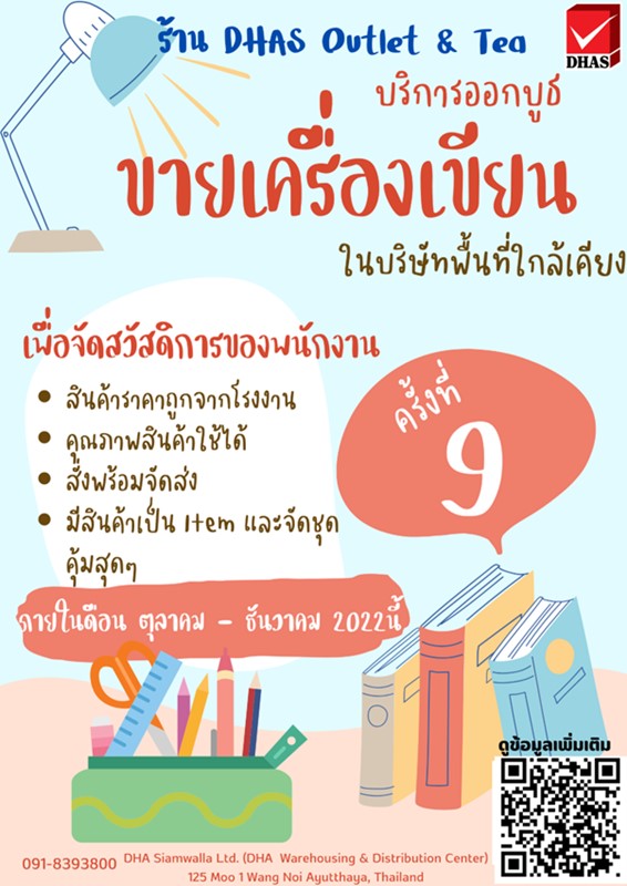 บริษัท ดี.เอช.เอ สยามวาลา ขายสินค้าเครื่องเขียน เอ้าท์เล็ท เริ่ม 1 ต.ค. – 31 ธ.ค. 65